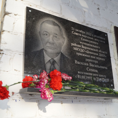 29 декабря 2022 состоялось торжественное открытие мемориальной доски в память первого директора Василия Васильевича Сезина, чьё имя теперь с гордостью носит наша школы. Мероприятие приурочили ко дню рождения Василия Васильевича - в этот день ему исполнилось бы 77 лет. В торжественной церемонии приняли участие родные Василия Сезина – супруга Валентина Алексеевна, дочь Ирина и сын Юрий с семьями, нынешний директор школы Куличков Игорь Олегович, ученики и педагогический коллектив школы.