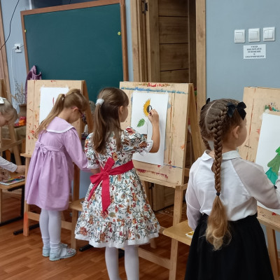 В этом году к нам пришло 8 первоклассников, которые захотели обучаться живописи.